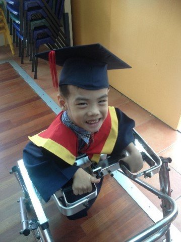 At the age of 3, I attended Early Intervention Programme at Cerebral Palsy Alliance Singapore (CPAS). When I was 5, the school has connection with mainstream kindergarten and I was selected to attend K1 at mainstream kindergarten. My mum had to accompany me in the classroom as I couldn’t sit firmly in class. However, after a year in kindergarten, my mum decided to pull me out from the kindergarten, mainly because I was unable to speak clearly and write; it was too difficult for me to follow the class curriculum. After that my mum started to explore ways of communication for me and she found a special type of keyboard called “intellikey keyboard”. I started to learn to type what I wanted to tell others using the keyboard which was connected to a notebook. When I graduated from Early Intervention Programme and transferred to School Programme at the same centre, I was assigned to “Functional Programme”. After a year, the school thought that I was capable to handle “Academic Programme” so I started to learn Mainstream academic subjects at CPAS. I continued to use the intellikey keyboard to do my homework and even used it to type out my answers in the exam. With this, I passed my Primary School Leaving Exam “PSLE” at the age of 13 years old! Currently, I’m still attending school at CPAS, mainly learning IT Programme, using an iPad and MacBook to design poster. I’m no longer using intellikey keyboard for communication as it has to be connected to a notebook but now I’m using AAC apps in my phone instead.