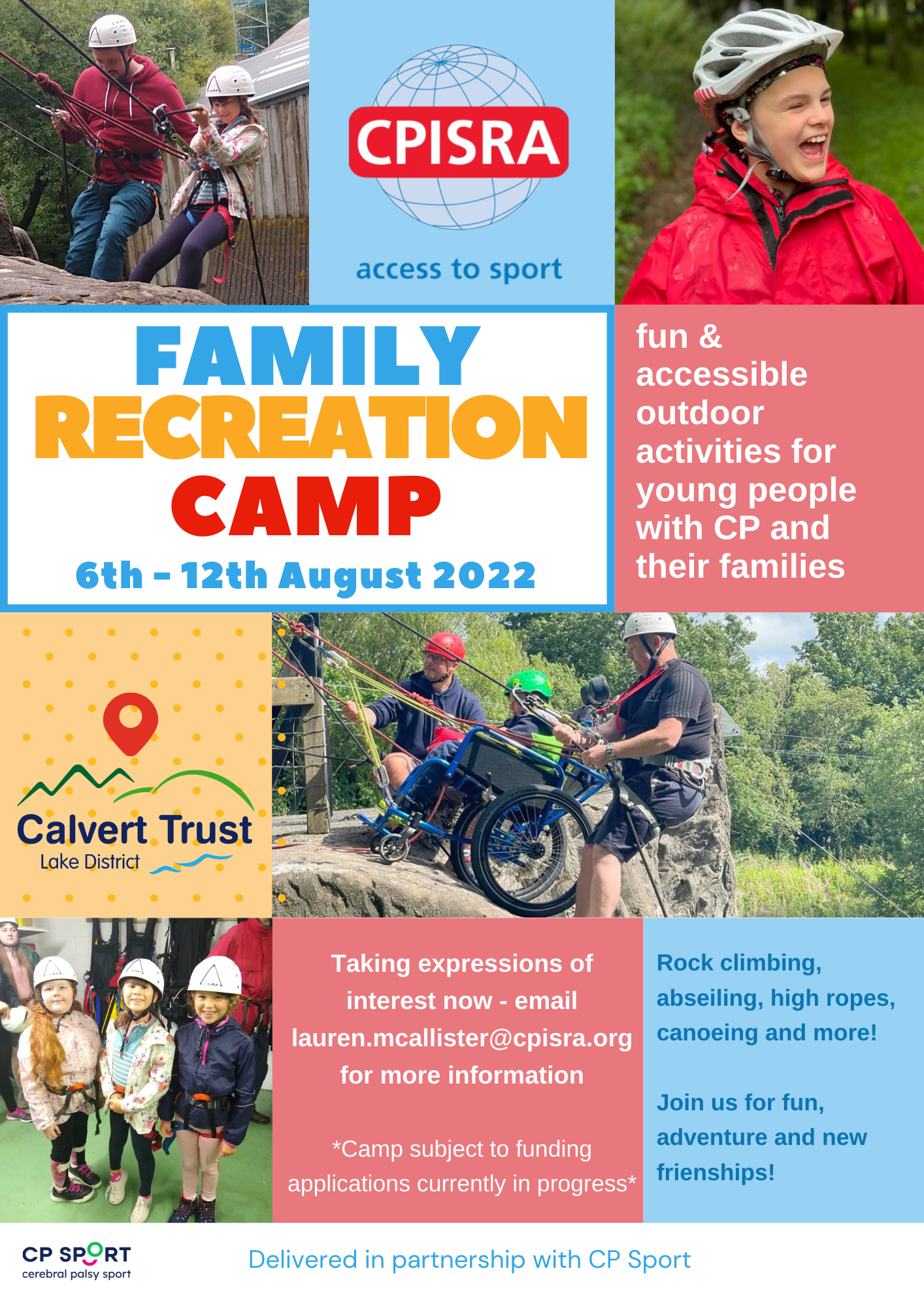 CPISRA is passionate about promoting sport for recreation, well-being and enjoyment, as well as sport development and competition. Join us at one of our CPISRA Outdoor Recreation Camps in 2022! Email the relevent contact person for more information.