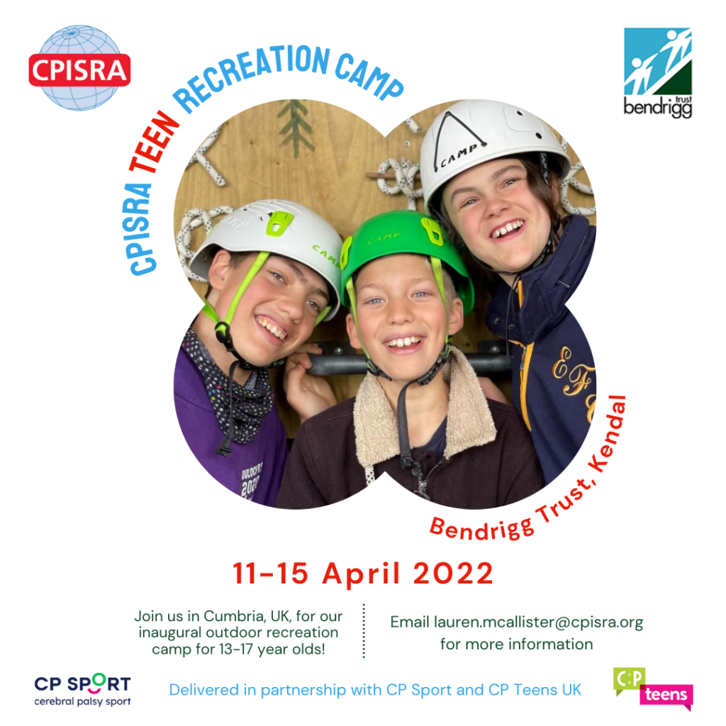 We are very excited to announce our inaugural TEEN outdoor recreation camp at the Bendrigg Trust ! This camp is for 13-17 year old who have cerebral palsy or a related neurological condition, and it promises fun, adventure and new friendships! Email lauren.mcallister@cpisra.org for more information!