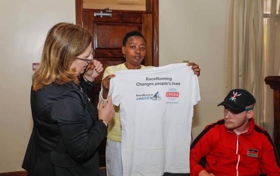 The interest shown by the local authorities was greater than I ever could imagine. I had the pleasure to meet the Governor of Kericho Professor Paul Kiprono Chepkwony at his office, to introduce myself and the sport I’m doing. He showed great appreciation and a lot of interest in the sport and to rise CP awareness. In connection to this meeting we had an official handover of the RaceRunning frames to Kenya’s parasport coaches along with CPISRA brochures and t-shirts printed “RaceRunning – changes people’s lives”. It was a pleasure but also a little bit sad to hand over my old RaceRunner that I have used for the past 5 years, the memories I have with that RaceRunner is unforgettable. But I’m very happy that it will help creating history in Kenya and hopefully spreading RaceRunning to the rest of African continent.