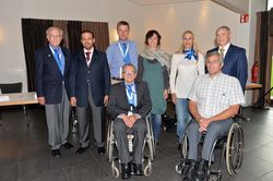 Newly elected Wheelchair Fencing Chairman, Jakub Nowicki accepted the award on his behalf, which was presented by the widow of Juan Palau, Mercedes Soleti.