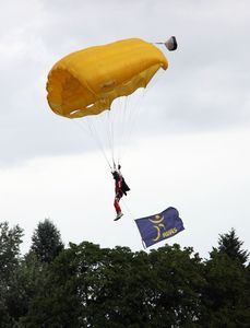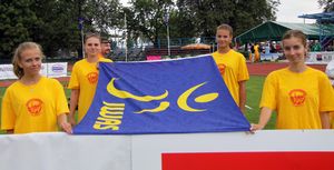 Today saw the start of the IWAS 2012 Junior Athletics Championships in Olomouc, Czech Republic. In a return to the beautiful city the opening event began with a parachutist flying in with the IWAS flag. Various local entertainers performed, such as Traditional Dance and Baton Twirling, and local children were again on hand to help throughout the day.